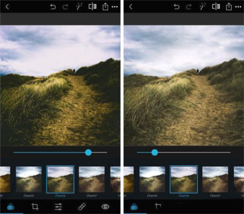 4、使用照片下方的滑块调整滤镜的强度。向右拖动可增加滤镜强度,向左拖动可减小滤镜强度。在大多数情况下,需要降低滤镜强度。这样可以避免的照片过度编辑。