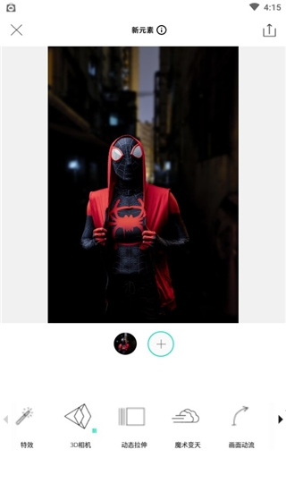 2、成功导入素材或选用内置素材后,进入图片编辑界面,浏览各类动态特效,挑选适配当前照片风格的特效进行添加。