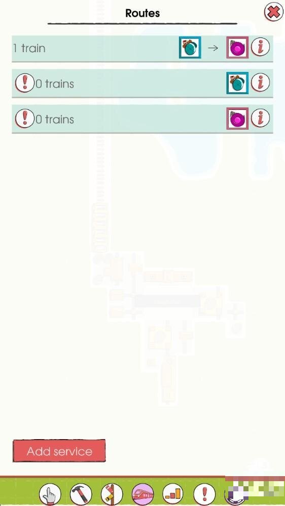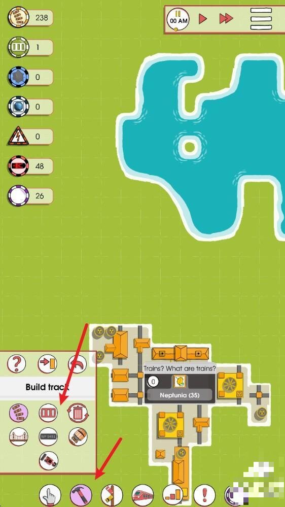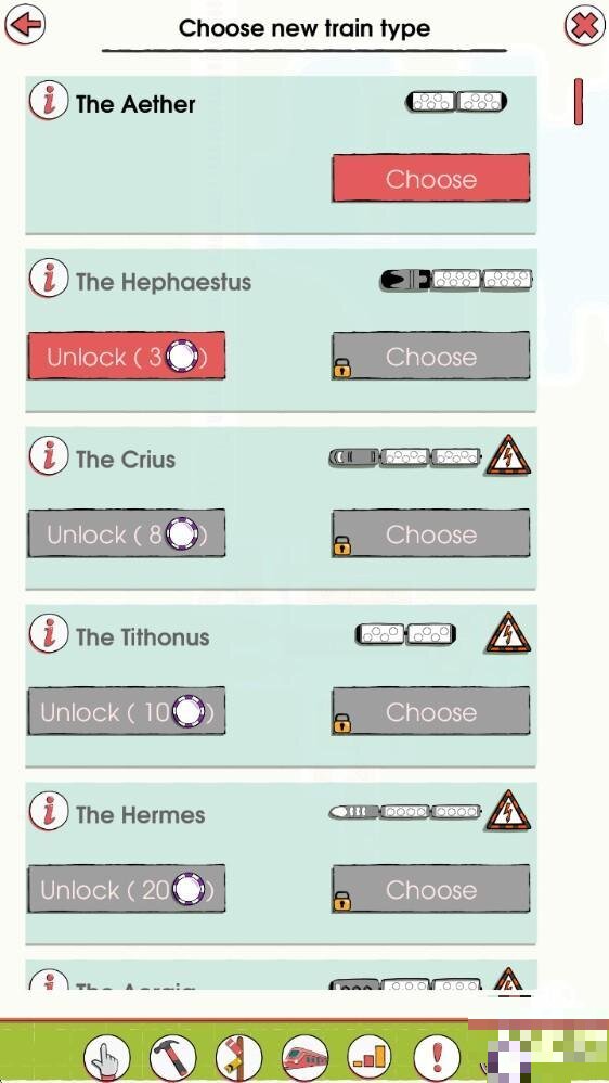 1、进入游戏后,点击下方的锤子图案,在这里可以选择各种铁路进行建设。
