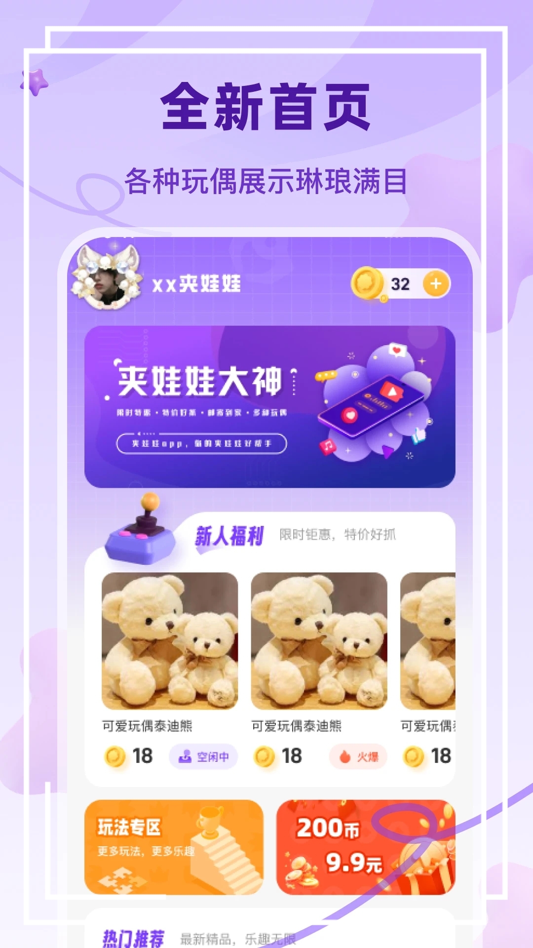 夹娃娃&以其独树一帜的夹娃娃游戏与电商购物相结合的模式,既满足了用户休闲娱乐的需求,又为消费者搭建了一个多元化的线上购物平台。不论是在游戏过程中收获的喜悦,还是在商城购物时的便捷,都无疑增添了生活的趣味性和便利性。