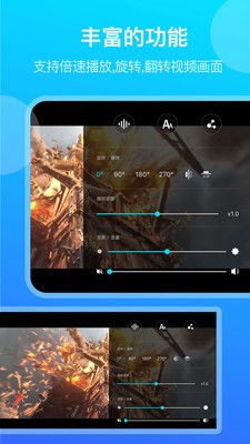 - 丰富的功能,支持倍速播放,旋转,翻转视频画面