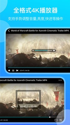 - 全格式4k播放器,支持手势调整音量,亮度,快进等操作