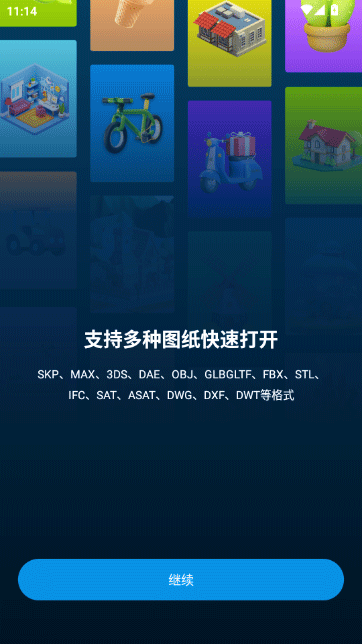 2、查看支持的多种图纸格式,包括SKP、MAX、DWG等,点击“继续”进入下一步设置。