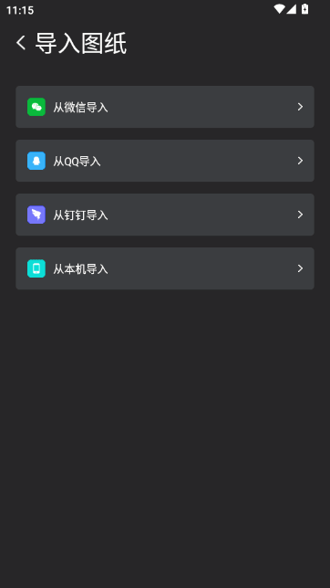 6、选择导入来源,支持从微信、QQ、钉钉或本机导入图纸,方便多平台文件管理。
