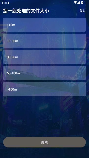 4、选择一般处理的文件大小范围,如10M、10-30M等,优化应用性能与加载速度。