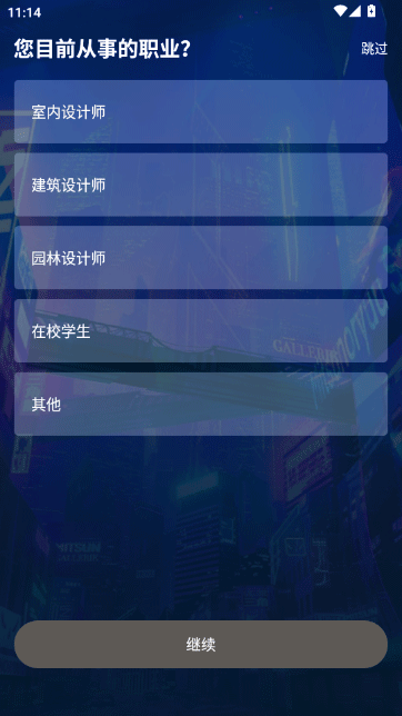 3、选择当前从事的职业,如室内设计师、建筑设计师等,以便应用推荐合适功能。