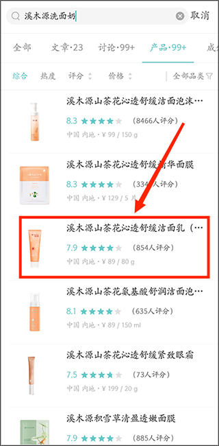 3、搜索结果出来后,点击对应需要查看成分的产品,进入产品详情页。