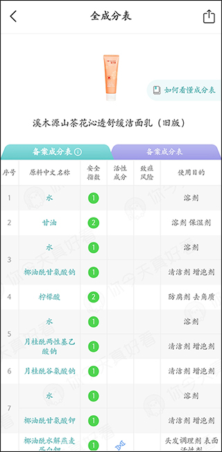 5、打开全成分表后,就能清晰看到该产品包含的所有成分信息。
