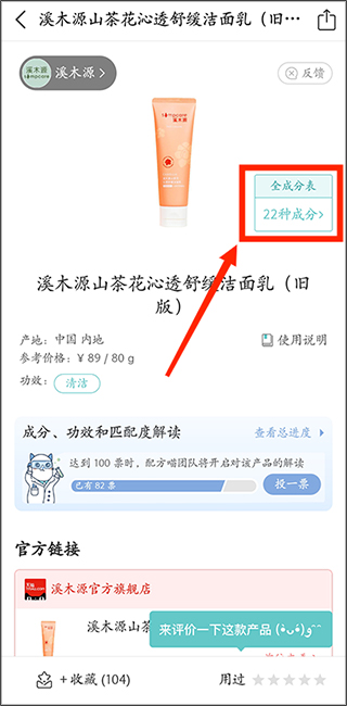 4、在详情页右侧找到【全成分表】选项,点击打开即可查看相关内容。