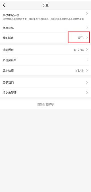 3、在设置页面点击“我的城市”选项。