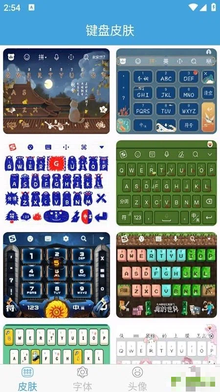 1、提供丰富的定制键盘皮肤,使用者可挑选多种心仪样式,打造专属键盘外观。