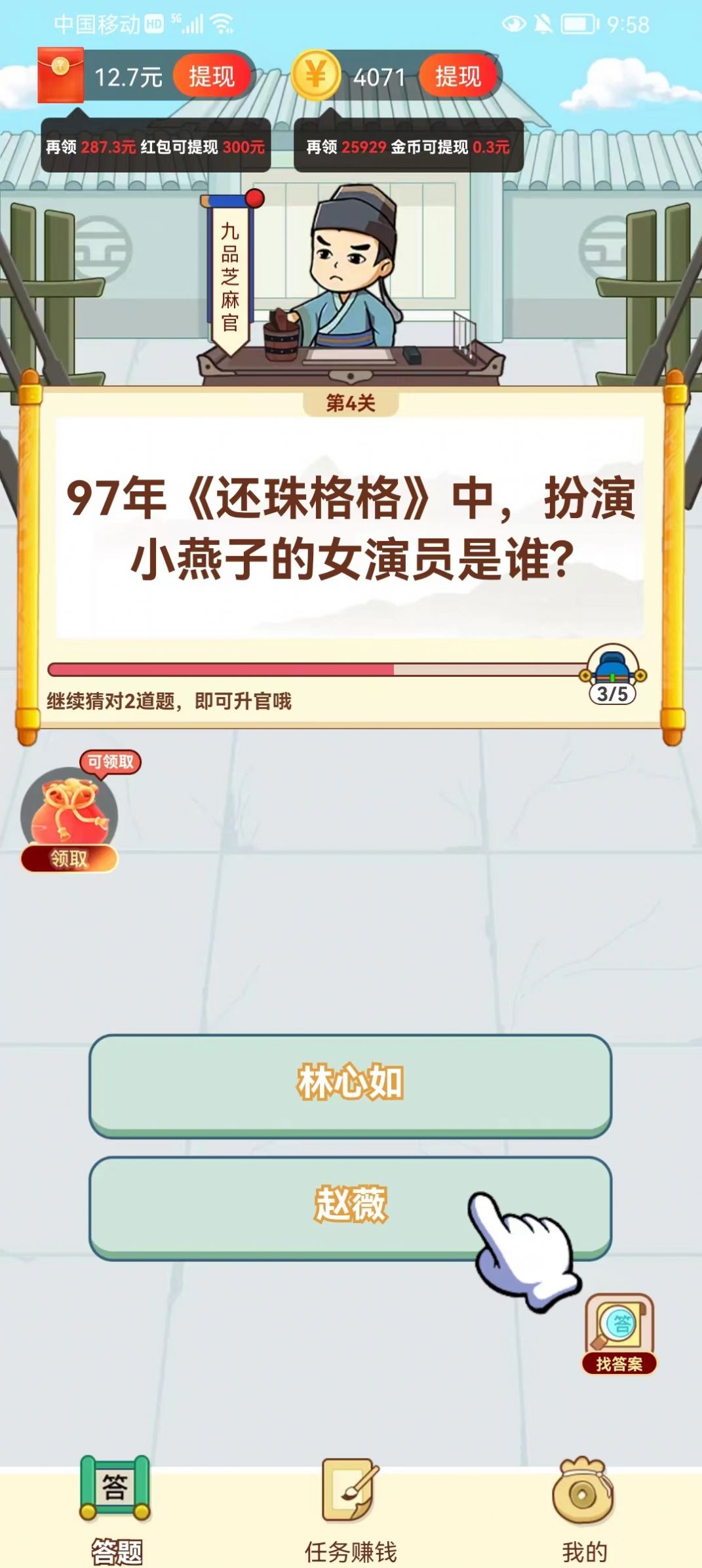 1. 多种答题类型:下班乐提供了多种类型的题目,包括成语、影视剧、歌曲等,用户可以根据自己的兴趣选择答题类型。