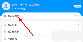 3、余额查询,在“我的”界面,我们点击列表中的“我的交通卡”。