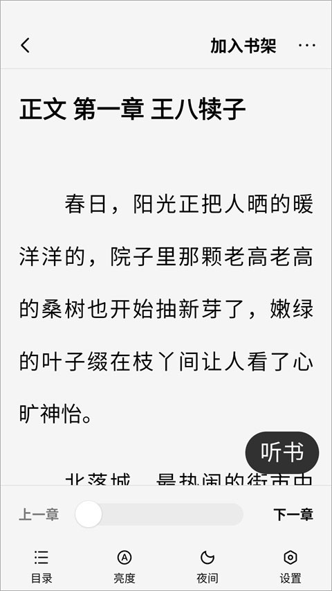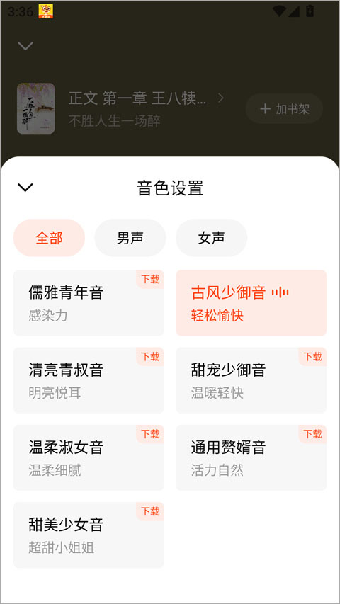 5、开启听书模式,可选择不同音色和语速,享受真人演播的听觉盛宴。