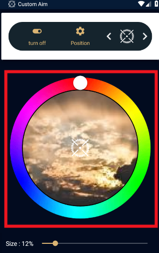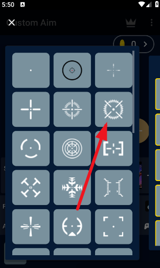 2、配置好后,可以切换各种准星的样式与颜色,在手机屏幕上呈现如下图;