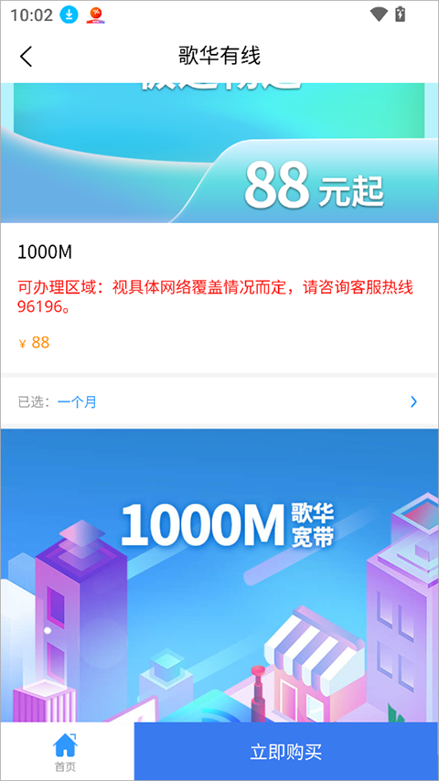 3、办理套餐只需进入套餐详情界面,点击“立即购买”即可完成支付,流程简单快捷。