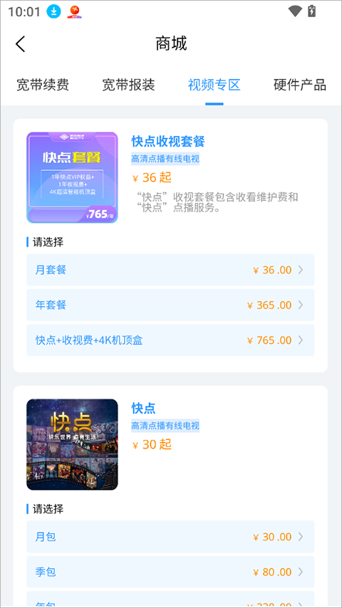 2、App中详细列出广电套餐资费,帮助用户清晰了解各项费用,方便选择适合自己的套餐。