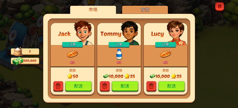 - 完成顾客订单,赚取收益,逐步发展壮大你的农场。