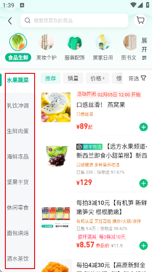 4、如需购买农产品或日用品即可通过分类进行商品购买。