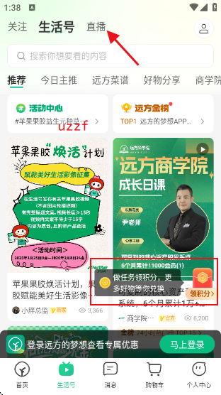3、观看相应数量的视频即可获得积分奖励,也可以查看对应的有机农产品直播。