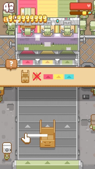 3、遇到不同的空盒子时,玩家可以将其扔出传送带,避免干扰后续包装流程。