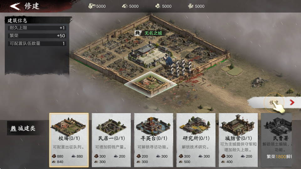 5、修建城池中的相应建筑,完成后即可结束新手教程。