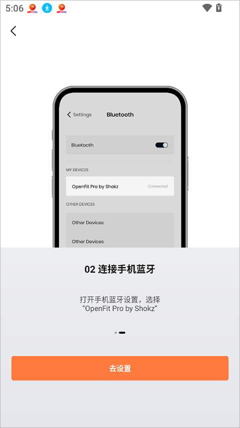 2、开启耳机,打开手机蓝牙,App会自动搜索附近耳机设备。