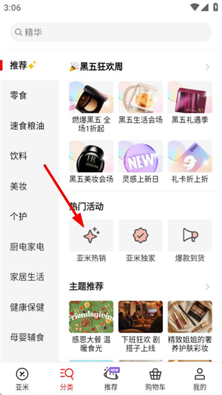 2、在分类页面,点击亚米热销选项,进入热销榜单页面。