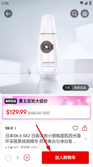 4、在商品详情页面,点击加入购物车,即可将该商品添加至购物车。