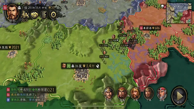 3.政务管理:可兼顾内外治理,对内可征粮探索、招揽能人异士,为麾下人才加官进爵、凝聚势力;对外可调兵遣将、运输资金粮草,率军征战四方、拓展疆土,实现内修外治的良性循环。