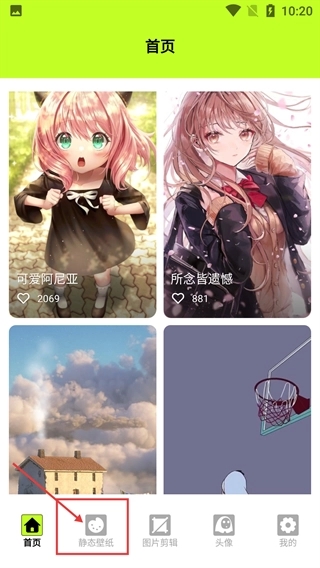 2、进入【首页】界面后,可浏览系统推荐内容,点击底部【静态壁纸】选项,切换至静态壁纸专属内容页面。