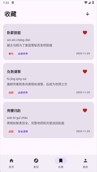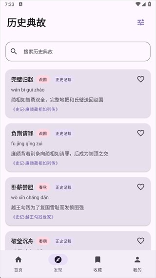 4、遇到感兴趣的典故,点击小红心即可收藏,方便后续快速查看学习。