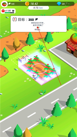1、游戏开始后,首先种植一批作物出来。点击即可农田即可种植,种植上后不断点击农田即可不断收取。