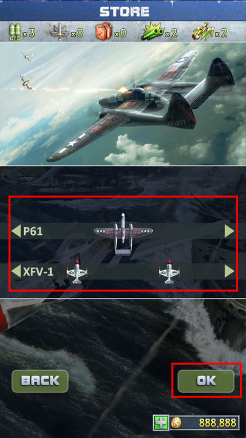 3、接下来进入主战机的选择界面,系统会通过动画演示每种战机的火力表现,方便你做出判断;
