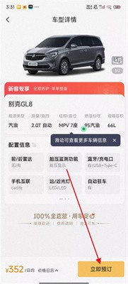 3、挑选好合适的车辆后,点击【立即预订】,完成后续操作即可完成租车。