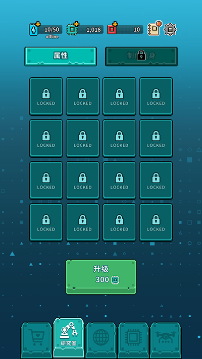 2、设置好后,点击下方研究院按钮可以进行属性升级、制作机身;
