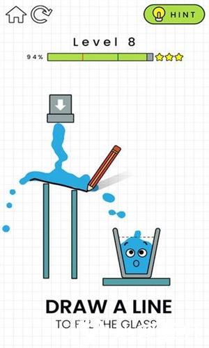 快乐玻璃杯(happy glass)安卓版是一款基于物理基础的画线游戏,在游戏中需要采用不同的方式跟路劲去完成困难的挑战,都有一定的困难;通过使用画线,结合物理下落原理,成功的将水倒进杯中及格就可以通过。