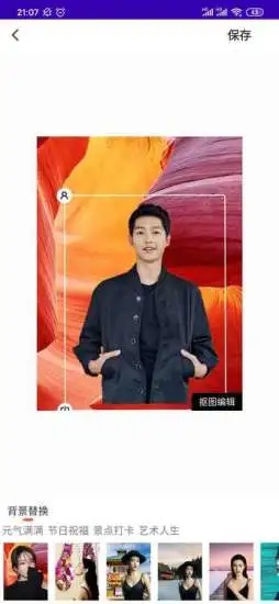 5、智能抠取出照片中想要的部分,连头发丝都可以精细处理,更换背景;