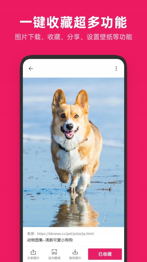 3、提供图片分享,保存,下载,设置壁纸,以及来源网页链接,不良图片举报等功能