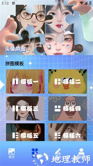 底部菜单中的 “拼图” 版块,提供多种精美模板,还支持自定义图片拼接,打造独特作品。