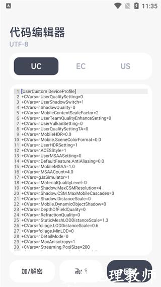 整合 UC、EC、US 三种文件的修改功能,支持对游戏底层代码进行调整,满足进阶用户的个性化画质需求。