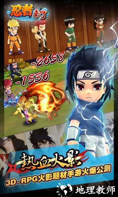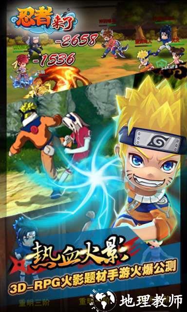 Q版动漫题材以移动设备作为平台的游戏。玩家在游戏世界内扮演着一个忍者,目标成为较强大的忍者——