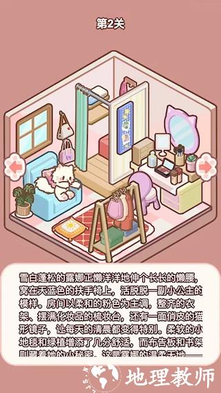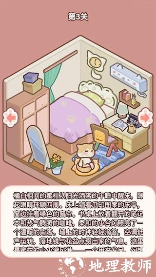 2、宠物互动:照顾猫咪日常,通过抚摸、剪指甲、洗澡等小游戏,加深与它们的情感联系,获取爱心。