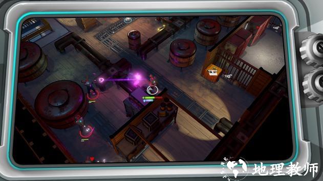 4、游戏游戏采用标准的45度视角,左侧的按钮控制人物的走动,右侧用来发射武器。