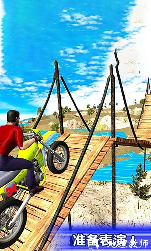 炫酷的摩托车是很多赛车游戏玩家的梦想,如果能加上额外的动作的话就更六了,这个摩托特技极限闯关赛就是这样的游戏,游戏中虽然整个路程不长但是路途艰辛,有着各种各样的障碍和陷阱,阻止你到达终点,你的唯一目的也就是在不摔车的情况下还能到达终点,3D场景引人入胜。真实的赛车场景为玩家带来身临其境的体验感!
