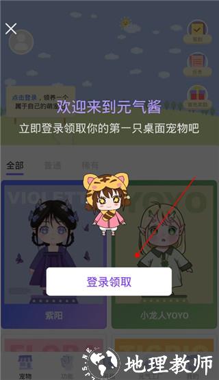 1、首先下载元气酱软件并打开,进入主页后选择登录账号,成功登录后,开机即会赠送一只小宠物。