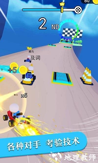 2、结合了卡丁车风格,你们可以其他玩家们在这里进行一场随时可以进行的飞车对抗哦。