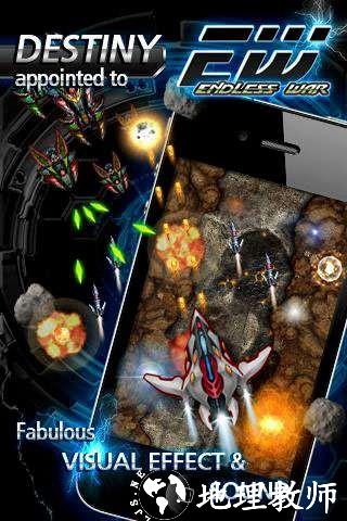 无尽之战这款游戏的较大亮点在于其精致细腻的画面处理,开战前的备战画面清晰而不张扬,战机的挑选,武器的选配,战场的选择,均给人一种运筹帷幄的沉着感。进入战斗后,炫目的射击及爆炸效果,艳丽多变的敌机阵容及宝石般的子弹,配合高保真音质的重金属战斗背景音,令人尽享淋漓尽致的飞行射击快感!游戏的操控也非常简单,战斗中只需用手指拖动战机,即可灵活躲避敌机发射的子弹。而通关胜利后,不菲的赏金也可以让你的战机及武器鸟枪换炮,不断征服更加强悍的外空敌人。