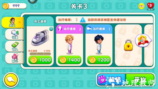 5、医生等级和治疗难度差距越大,治疗越缓慢,要多升级培养医生哦!