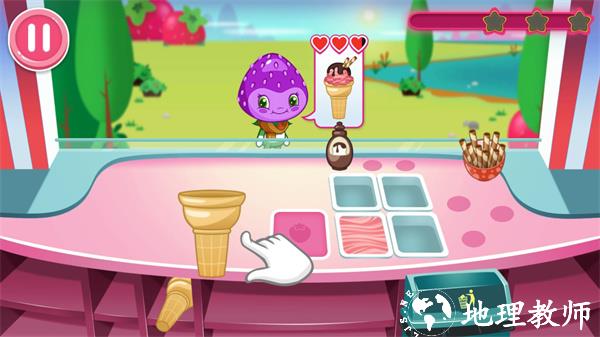 3、关卡核心任务是制作符合顾客口味的冰激凌,完成质量越高,越容易获得满星评价。